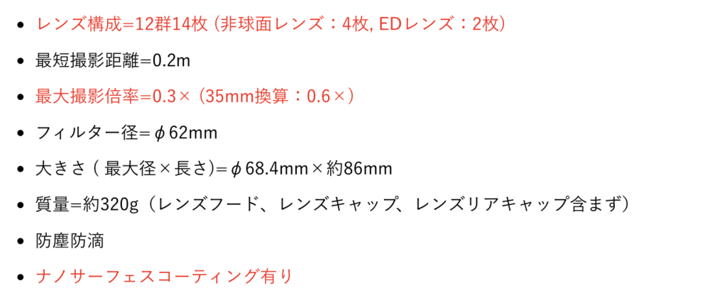 但し、マクロ撮影を行いたいユーザーにとっては最大撮影倍率の高い望遠端の性能が最も重要かと思います。