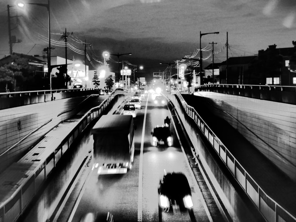 カラーがない事で何処と無く懐かしさも感じられますが、高コントラストでノイズレスな絵が現代的な車の雰囲気を良く引き出しているかと。