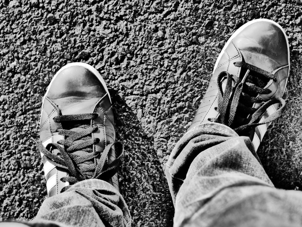 ジーンズにスニーカー、そして背景のアスファルトが良く合っているかと。